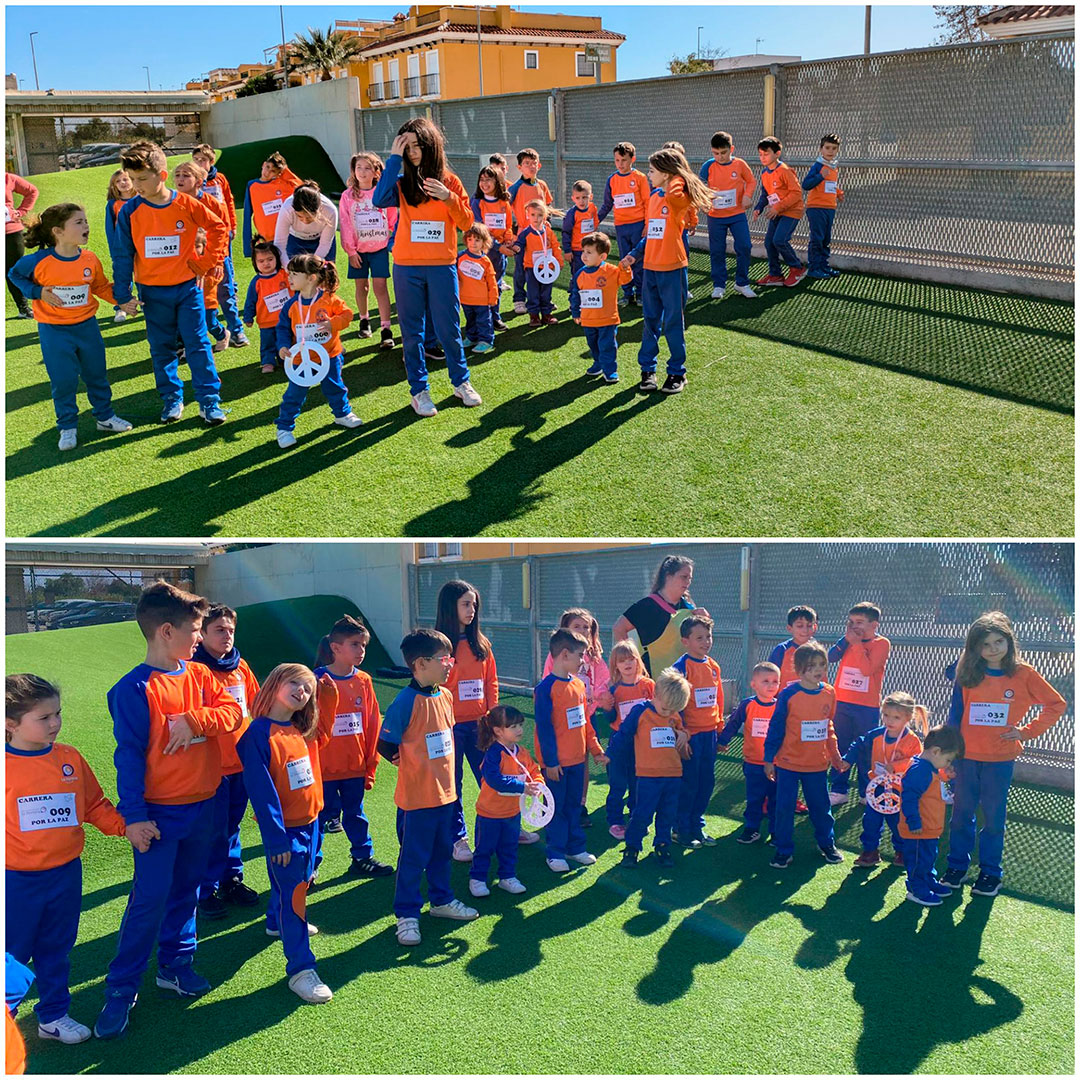 Este año lo celebramos con varias actividades, pero la que más gustó a nuestros alumnos fue ¡¡la carrera por la paz!! Todos llevaban su dorsal y hasta los más peques decoraron el símbolo de la paz para llevarlo durante la carrera. Ayudados por los mayores, se apuntaron a esta actividad tan divertida ¡donde todos somos ganadores!