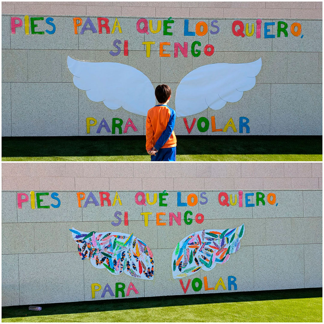También realizamos nuestro mural por el “Día de la Paz”, inspirado en una frase muy especial, quedando así de bonito con las alas llenas de las plumas que hicieron nuestros alumnos.
